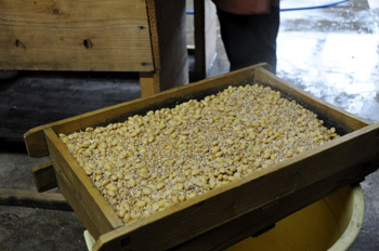 醤油造りの第一歩は大豆と小麦から「麹(こうじ)」を作ることから始まります。